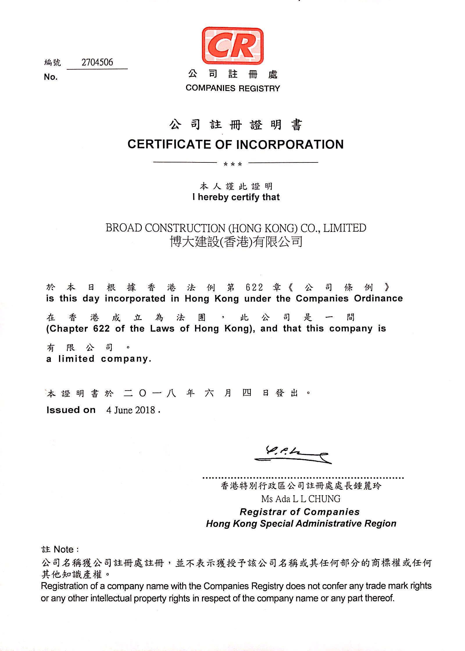 為進一步拓展港澳臺、東南亞以及國際市場,全力支持和參與國家“一帶一路”戰(zhàn)略和粵港澳大灣區(qū)建設,博大建設集團深入“一帶一路”沿線國家和地區(qū)進行考察調(diào)研,精心組建具有國際視野的專業(yè)人才團隊,經(jīng)過精心籌備,于2018年6月4日注冊成立了博大建設(香港)有限公司。